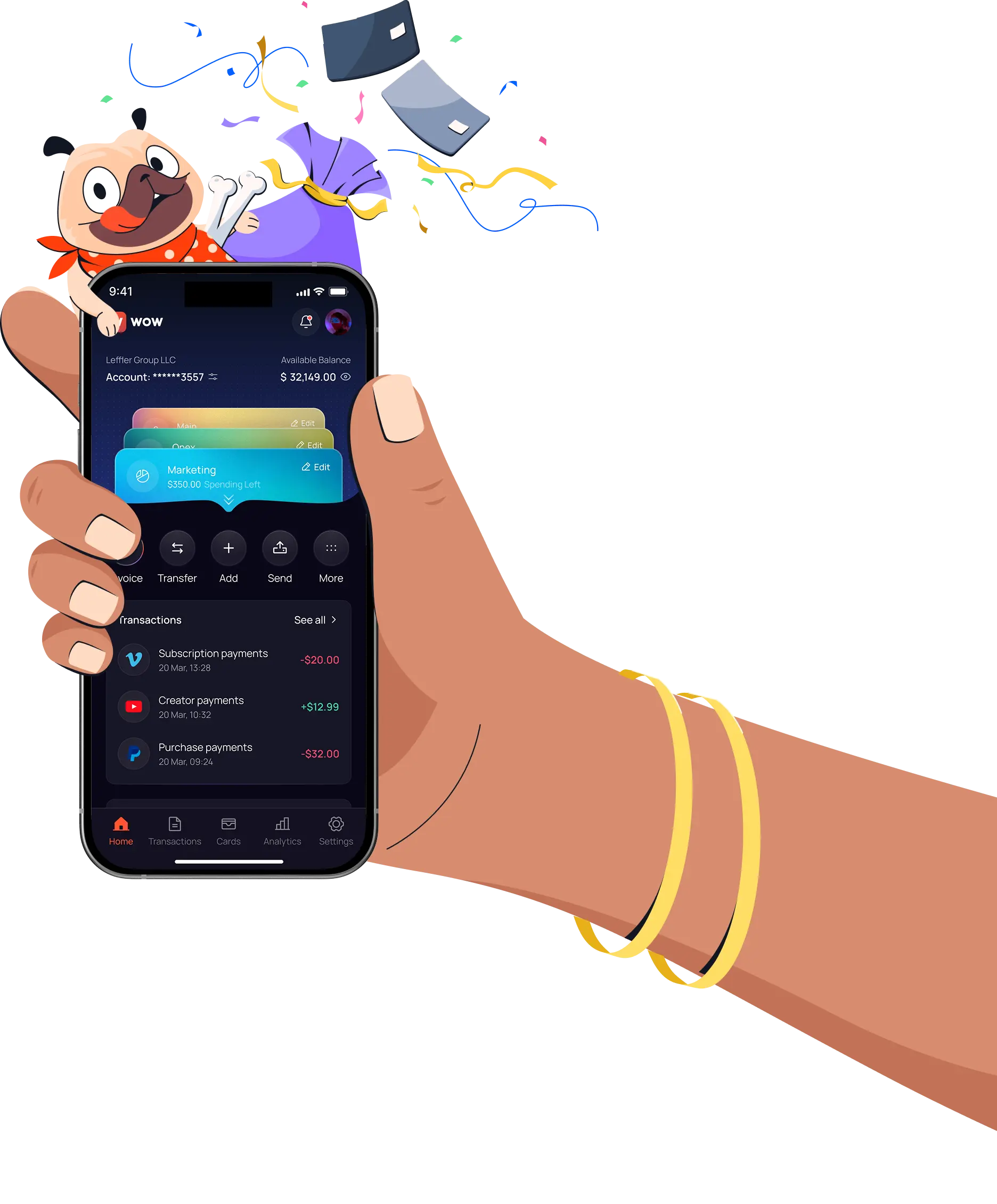 WOW Brand is a financial technology company that combines modern debit card issuing services with payment processing solutions. We help business owners cut costs, access capital, and manage their money more effectively - all in one place.